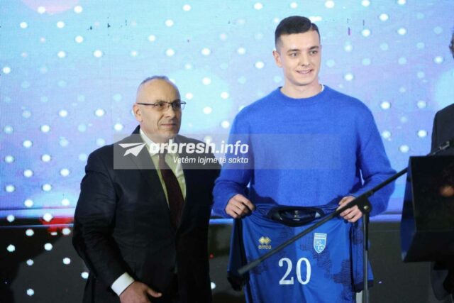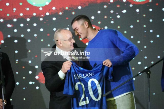 Ndërsa i pari i FFK-së, Agim Ademi ia dhuroi fanellën e kombëtares së Kosovës, Asllanit.