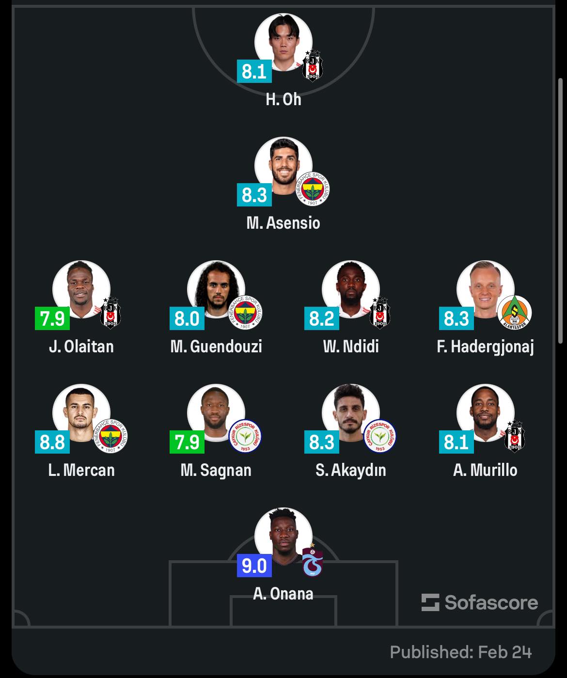 Falë performancës së tij të mirë ai është përzgjedhur në formacionin më të mirë të javës në SofaScore.