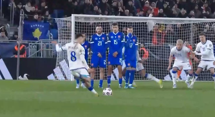 Ishte Florent Muslija që shënoi një supergol nga gjuajtja e lirë për ta lënë të shtangur portierin vendas.