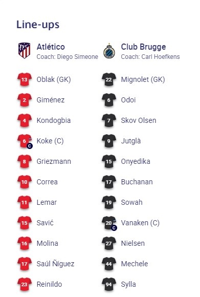 Skuadra e Atletico Madrid synon të bëjë sonte kthesën pozitive në Champions League, kur përballë do të ketë skuadrën belge, Club Brugge.