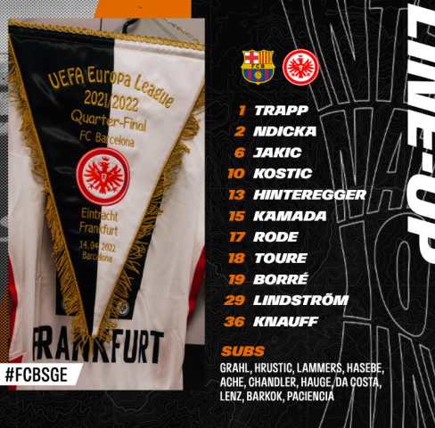 Janë publikuar formacionet zyrtare për ndeshjen kthyese mes Barcelonës dhe Frankfurtit, ndeshje kjo e cila është në kuadër të çerekfinales së European League.