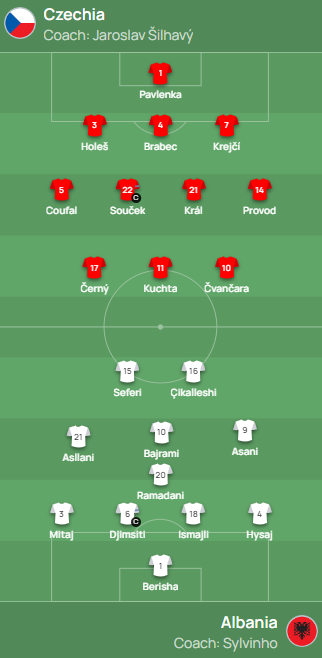 Shqipëria aktualisht gjendet në pozitën e dytë me dy fitore dhe një humbje ( gjashtë pikë), ndërsa Çekia në pozitën e parë me dy fitore dhe një barazim.