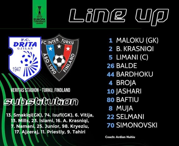 Skuadra nga Gjilani sot do të përballet me Inter Turkun në ndeshjen e kthimit të fazës së parë të kualifikimeve për Conference League.