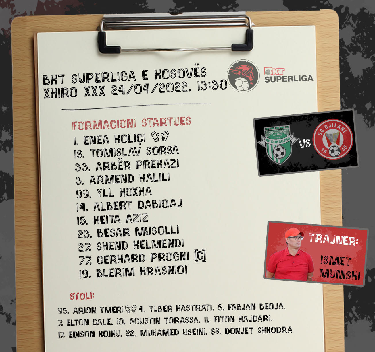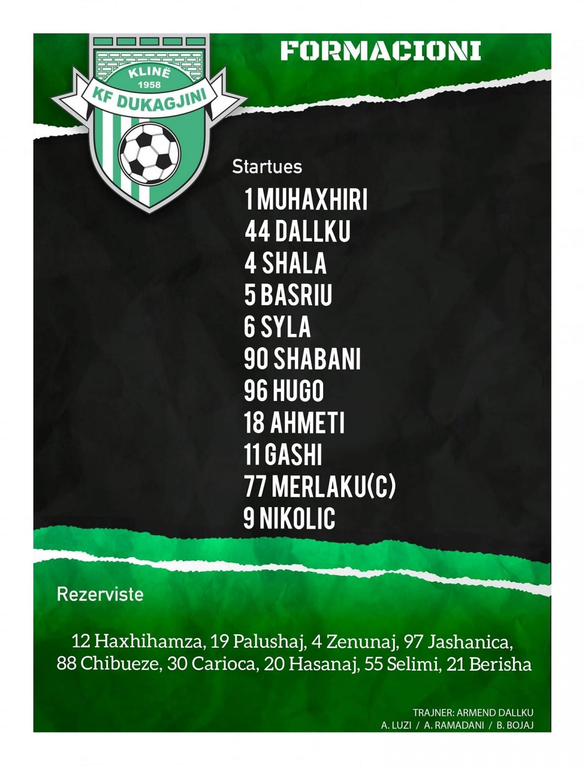 Ndërsa tashmë janë publikuar formacionet zyrtare për ndeshjen mes Dukagjinit dhe Gjilanit.
