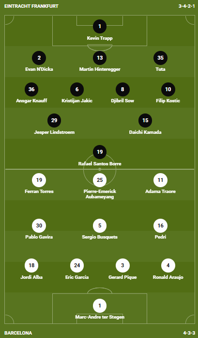 Janë publikuar formacionet zyrtare për ndeshjen Frankfurt – Barcelona.