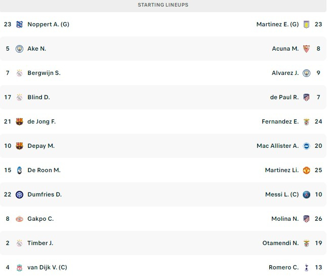 Janë publikuar formacionet zyrtare për ndeshjen Holandë – Argjentinë.