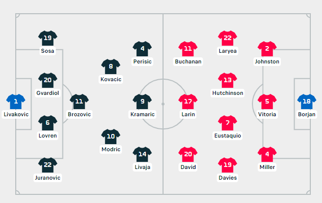 Tashmë janë publikuar formacionet zyrtare të ndeshjes mes Kroacisë dhe Kanadasë.