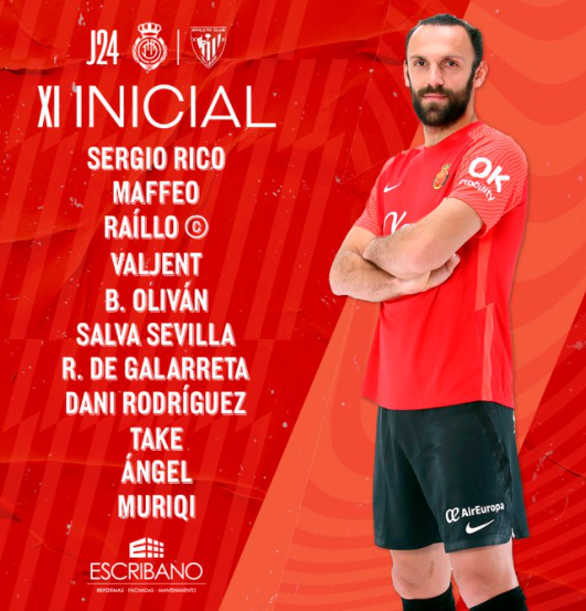 Pjesë e formacionet startues tek Mallroca, do të jetë edhe ylli i Kombëtares së Kosovës, Vedat Muriqi.