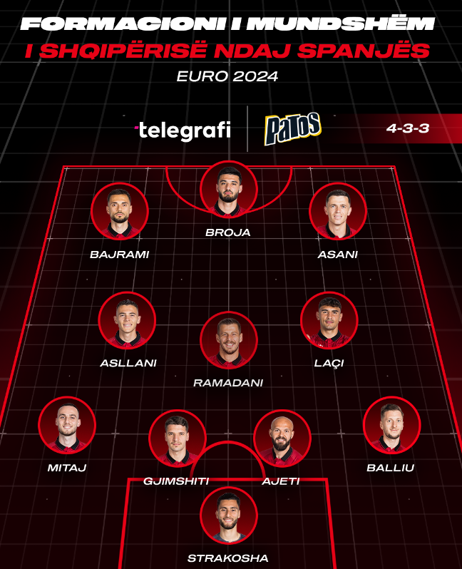 Kombëtarja e Shqipërisë do të luajë sot (e hënë) ndeshjen e fundit të Grupit B ndaj Spanjës, në kuadër të Euro 2024. Trajneri Sylvinho tashmë ka vendosur për formacionin që do të inkuadrojë nga minuta e parë.