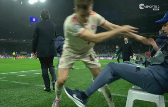 Lojtari i Bayern Munich, Josip Stanisic, shtyu një djalosh që po mbante topat gjatë ndeshjes së skuadrës së tij në Ligën e Kampionëve me Interin këtë mbrëmje.