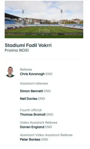 E kjo sfidë do të gjykohet nga gjyqtarët anglezë me Chris Kavanagh që është kryesori, derisa ndihmësit e tij janë Simon Bennett dhe Neil Davies.