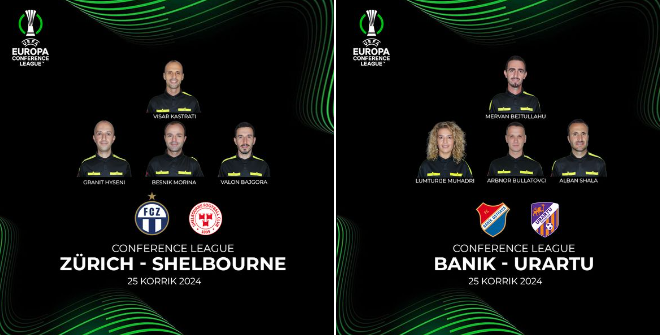 Në anën tjetër, Mervan Bejtullahut i është besuar nga UEFA ndeshja e raundit të dytë të Ligës së Konferencës mes Banik Ostrava dhe Urartu.