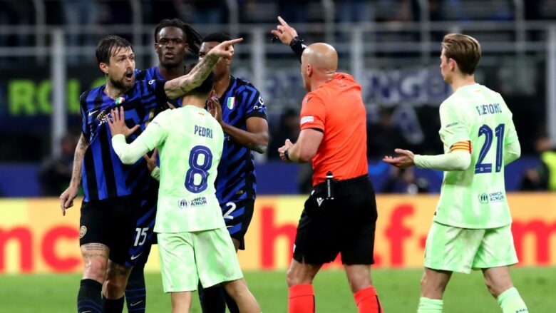 Gjyqtari polak u akuzua dhe kritikua nga lojtarët dhe trajneri Barcelonës pas ndeshjes kundër Interit, për vendime në favor të klubit italian.