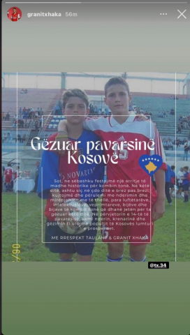 Mesfushori me prejardhje shqiptare, Granit Xhaka ka uruar 14 vjetorin e pavarësisë së Kosovës përmes një “story” në Instagram.