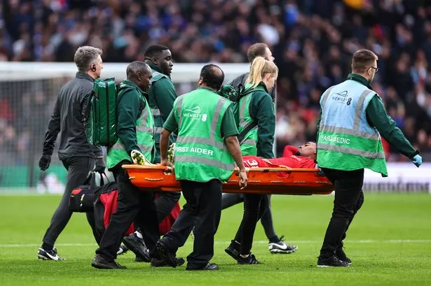 Teksa futbollisti i ‘The Reds’ nuk mundi të vazhdoj më ndeshjen dhe u detyrua të largohet nga fusha me barel.