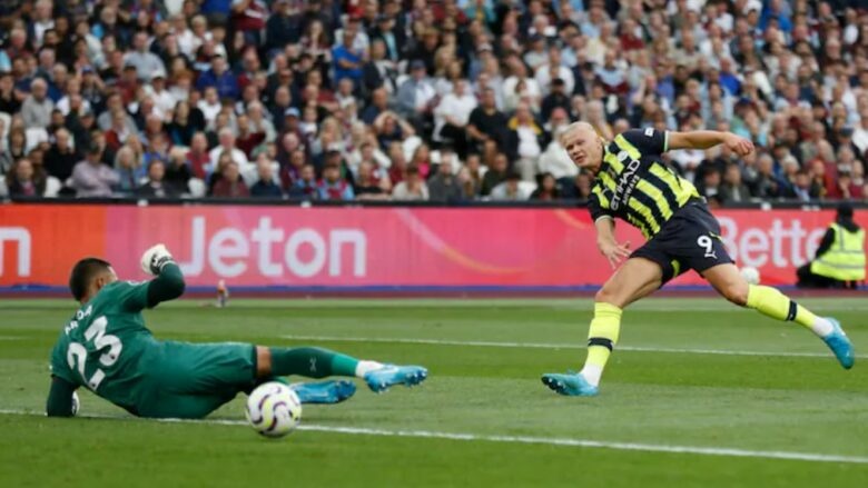Një gabim i rëndë nga mbrojtja e West Hamit i shërbeu më së miri Erling Haalandit i cili në minutën e dhjetë shënoi për rezultatin 1-0.