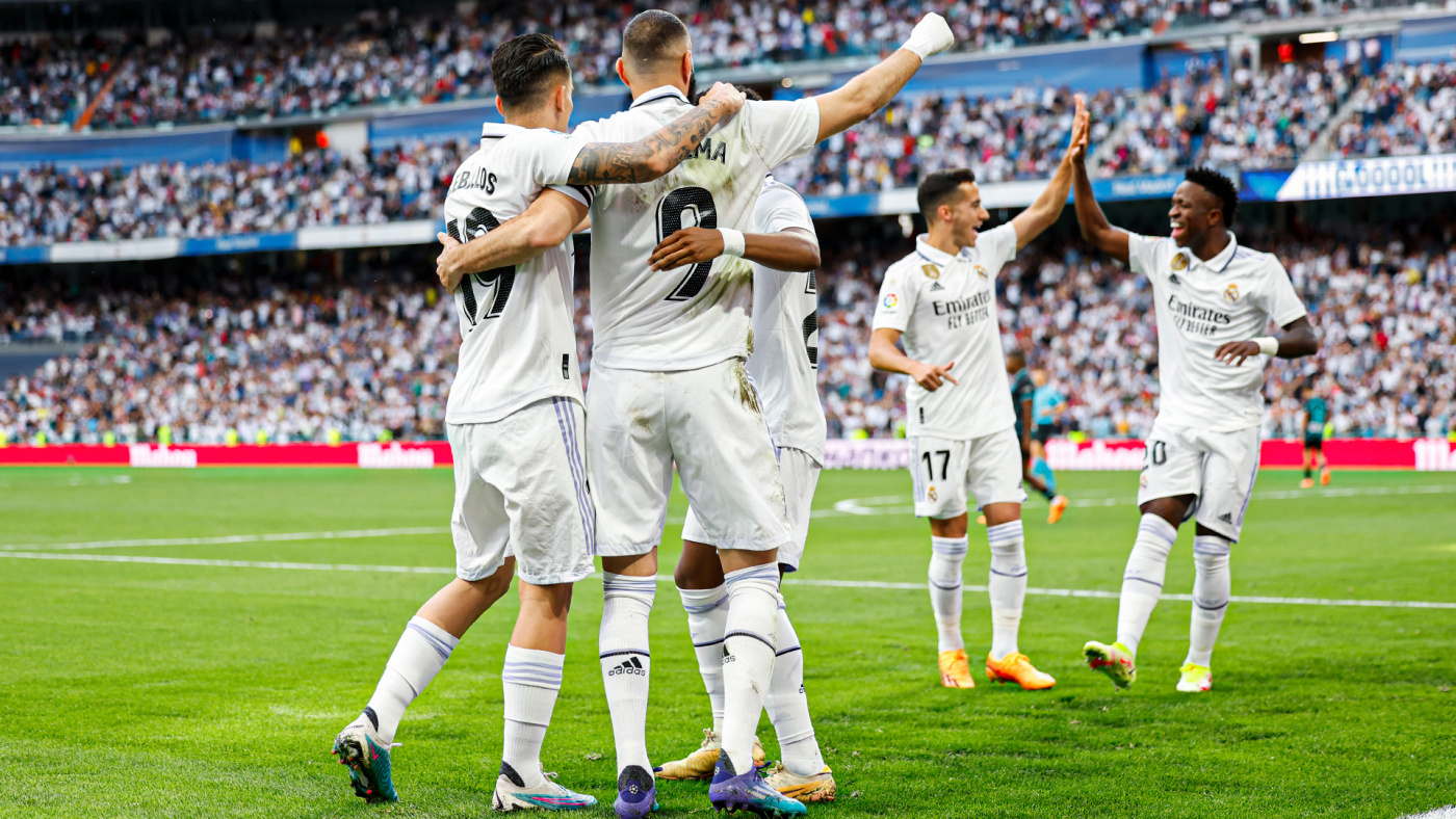 Dy asistime të shkëlqyera nga Vinícius Júnior dhe Rodrygo panë që Benzema të regjistronte një dygolësh brenda 20 minutave përpara se francezi të siguronte një hat-trick në pjesën e parë nga pika e parë.