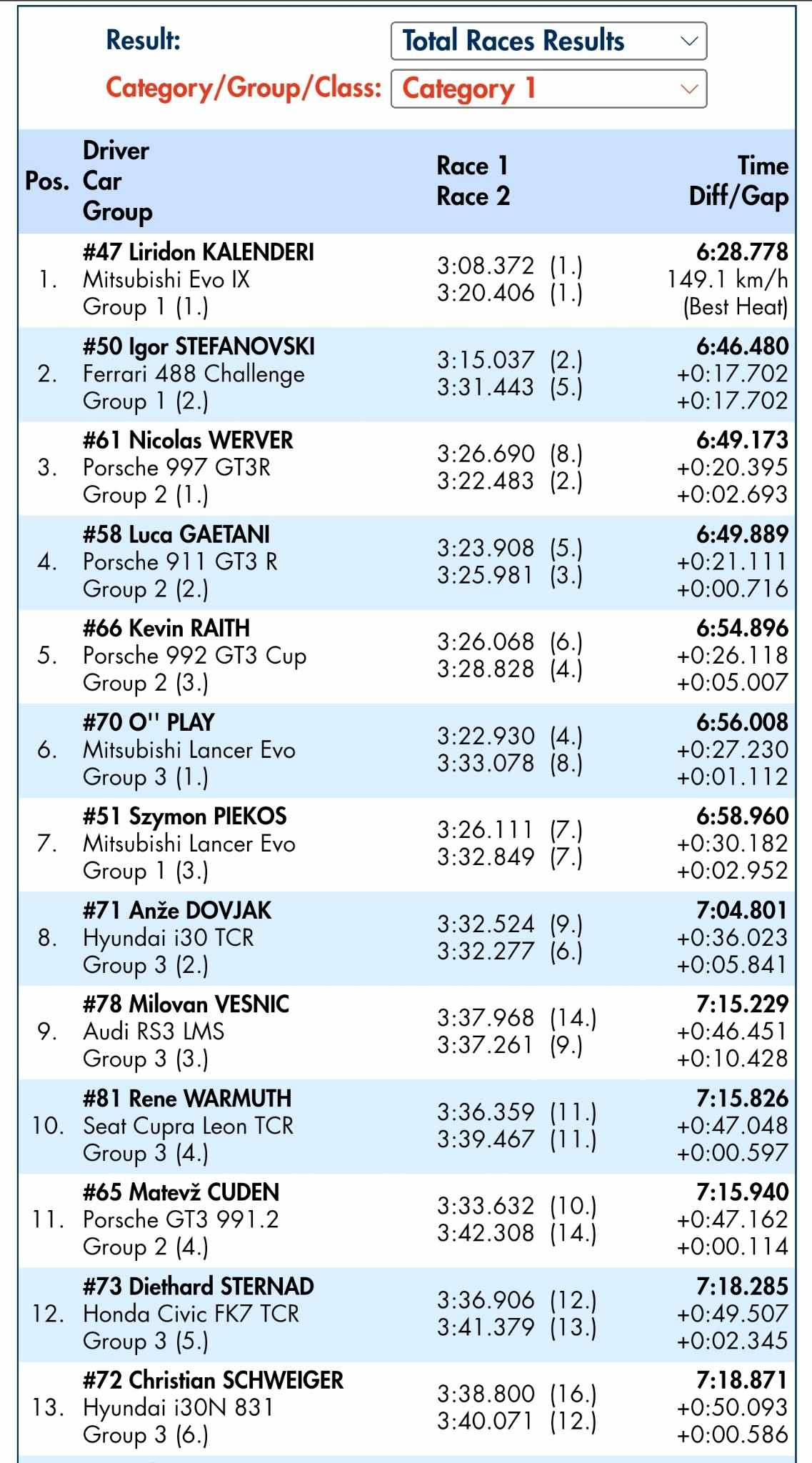Kalenderi punën më të madhe e kreu në vozitjen e pare, në të cilën në cak arriti për kohën fantastike prej 03:08.372 minuta, ndërsa në të dytën pati kohë prej 03:20.406, derisa Stefanofski pati kohë prej 03:15.037 dhe 03:31.443 minuta.