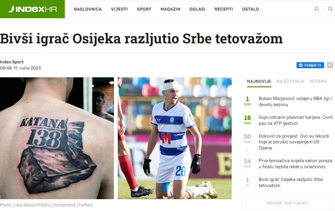 Gazeta e madhe kroate “Index.hr” ka shkruar në lidhje me këtë tatuazh të Dakut, i cili sipas tyre, ka ‘çmendur’ serbët.