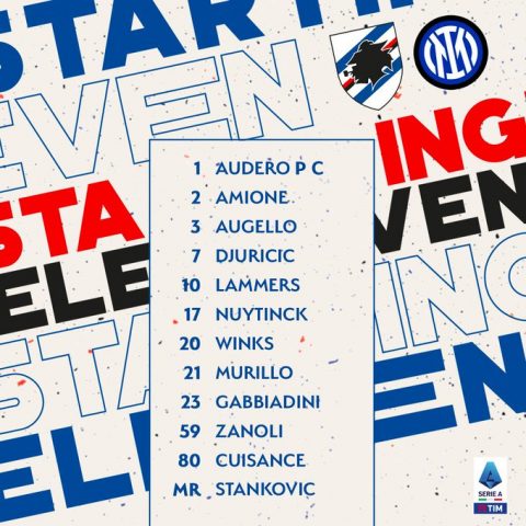 Formacioni startues i Sampdorias: Audero; Murillo, Nuytinck, Amione; Zanoli, Cuisance, Winks, Augello; Djuricic; Gabbiadini, Lammers.