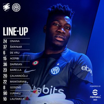 Formacioni startues i Interit: Onana; Skriniar, De Vrij, Acerbi; Darmian, Barella, Calhanoglu, Mkhitaryan, Gosens; Lautaro Martinez, Lukaku./telegrafi