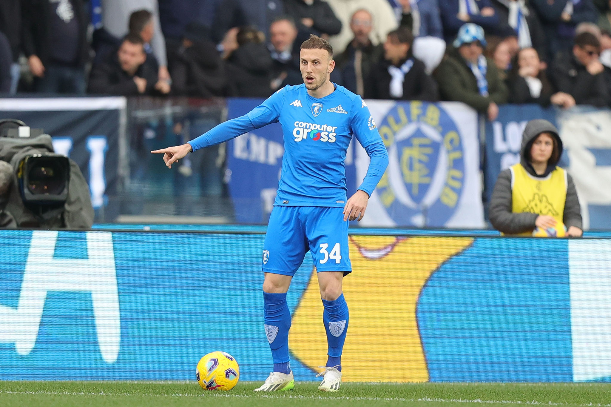 EMPOLI, ITALY - MARCH 3: Ardian Ismajli of Empoli FC in action during the Serie A TIM match between Empoli FC and Cagliari - Serie A TIM at Stadio Carlo Castellani on March 3, 2024 in Empoli, Italy. (Photo by Gabriele Maltinti/Getty Images)