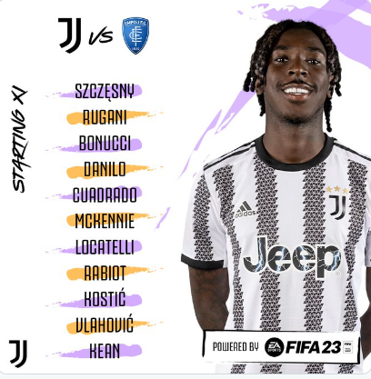 Szczesny; Rugani, Bonucci, Danilo; Cuadrado, McKennie, Locatelli, Rabiot, Kostic; Vlahovic, Kean.