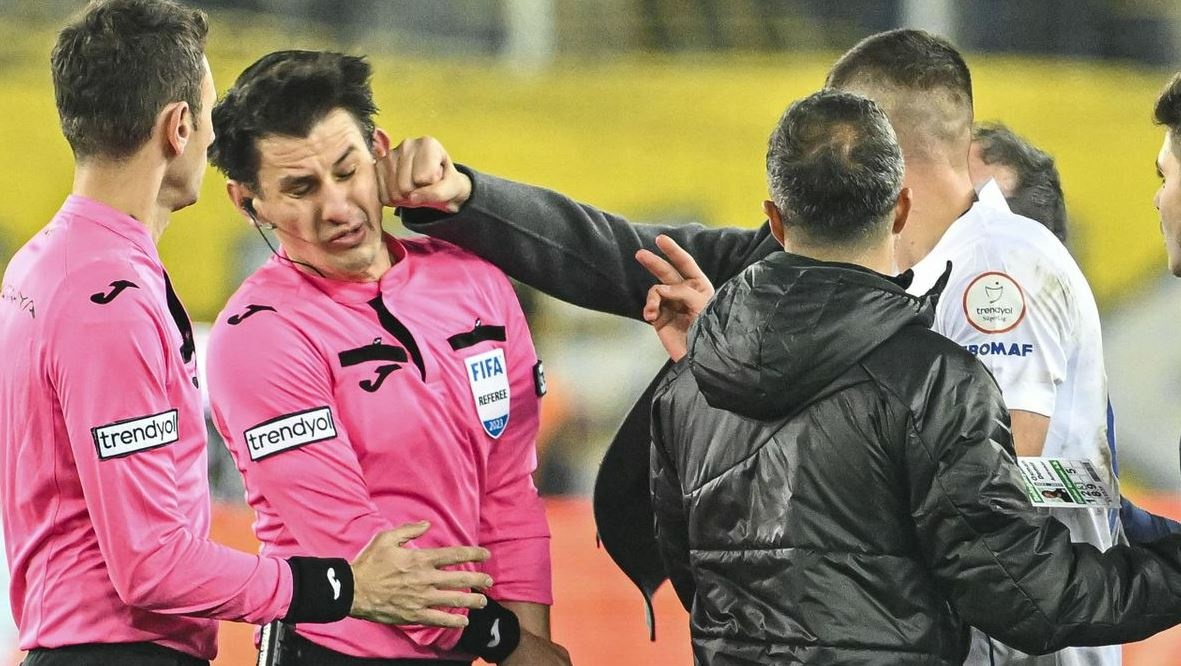 Gjyqtari më pas u godit me shkelm ndërsa ishte shtrirë në fushë.