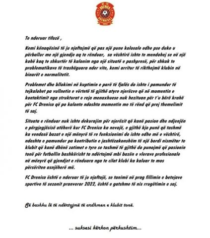 KF Drenica tash e sa kohë ishte duke kaluar në një gjendje të rënduar financiare.