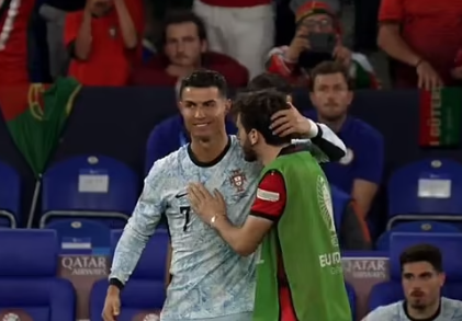 Në fund të ndeshjes, teksa bashkëlojtarët po festonin suksesin e madh, ai vendosi të përshëndesë Cristiano Ronaldon, me të cilin ka shkëmbyer fanellat.