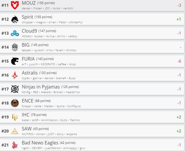 Në ranglistën e “HLTV” tashmë skuadra kosovare ka zbritur për një pozicion duke zënë vendin e 21’të.