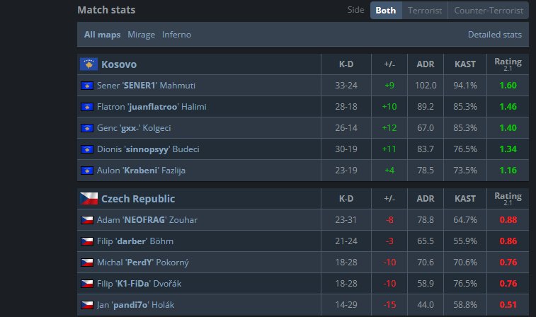 Super performancë në ndeshjen e parë pati kapiteni “sinnopsyy”. Por lojë të mirë bën edhe pjesa tjetër e grupit.