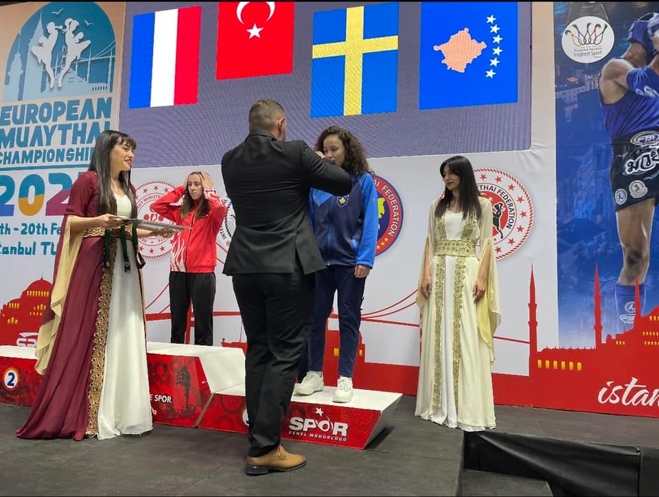 Përfaqësuesja e Kosovës në Muay Thai në Kampionatin Evropian, Erona Shabani ka pranuar medalje për vendin e tretë në këto gara.