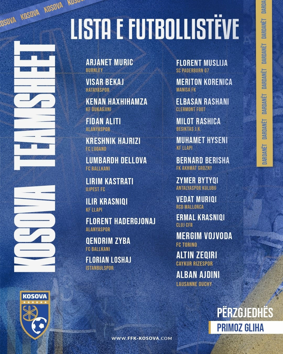 Kosova ka publikuar listën e lojtarëve për tri ndeshjet e këtij muaji.