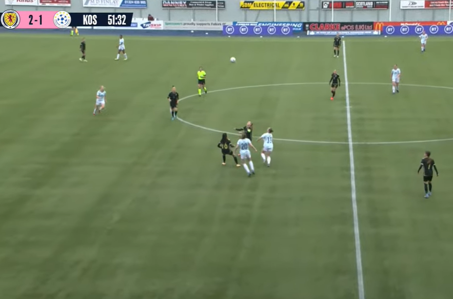 Goli i parë erdhi në formën e autogolit dhe u shënua nga Broadrick, e cila devijoi topin e Berishës për të çuar Kosovën në epërsi prej 0:1.