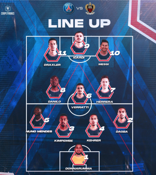Tashmë janë publikuar formacionet zyrtare për ndeshjen e kupës së Francës, ku Paris Saint-Germain do të jetë nikoqir i Nice.