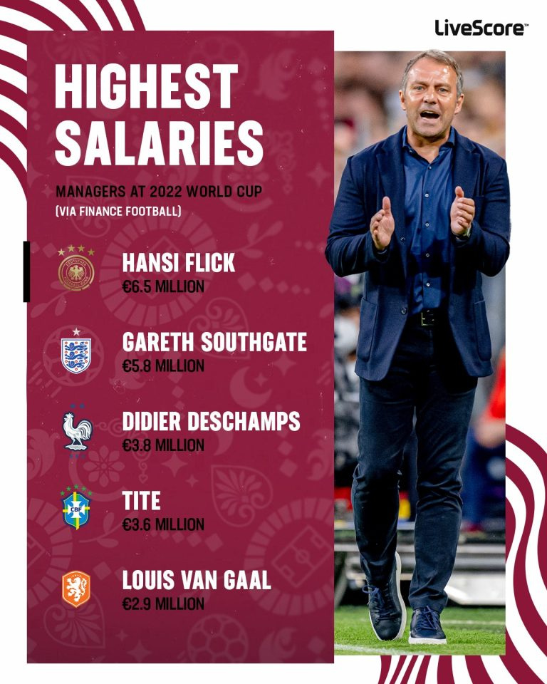 E presionin më të madh e ka menaxheri i Gjermanisë, Hansli Flick, pasi është trajneri më i paguar me 6.5 milionë euro.