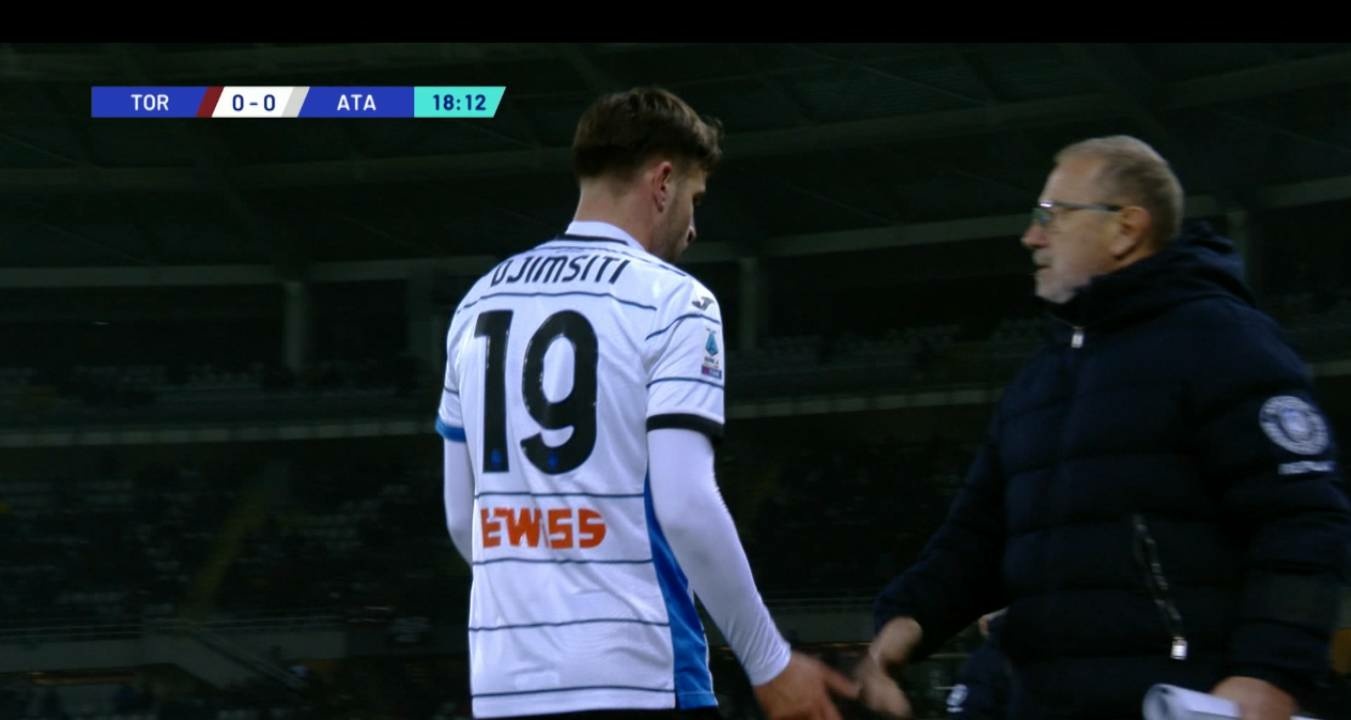 Gjimshiti u mundua të vazhdoj ndeshjen por pas bisedës me stafin teknik dhe mjekët e skuadrës, u vendos që të zëvendësohej, për të mos rrezikuar.