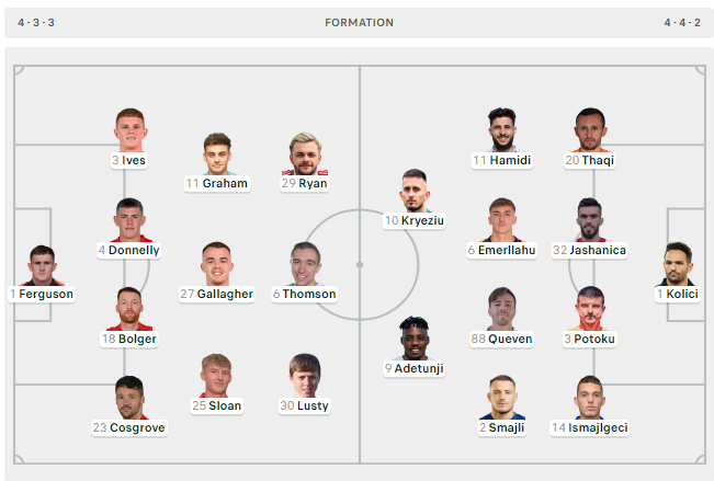 Janë publikuar formacionet zyrtare të ndeshjes mes Larnes dhe Ballkanit.