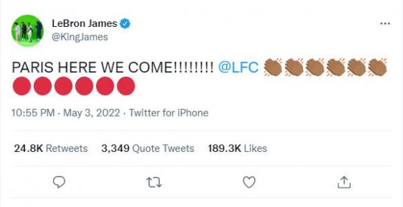 Mbetet të shihet nëse LeBron do ta marrë rrugën nga përtej Atlantikur për të qenë prezent në Paris dhe për ta parë finalen e “Saint-Denis” në fund të këtij muaji./GE/