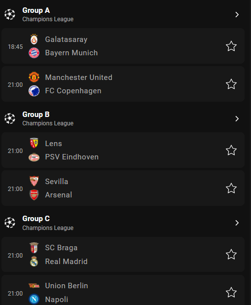 Grupi A nis me dueli Galatasaray-Bayern Munich, ndeshje kjo që do të luhet në Stamboll, në një stadium që pritet të jetë i zjarrtë pasi që kjo përballje është tejet e rëndësishme për të dy skuadrat.