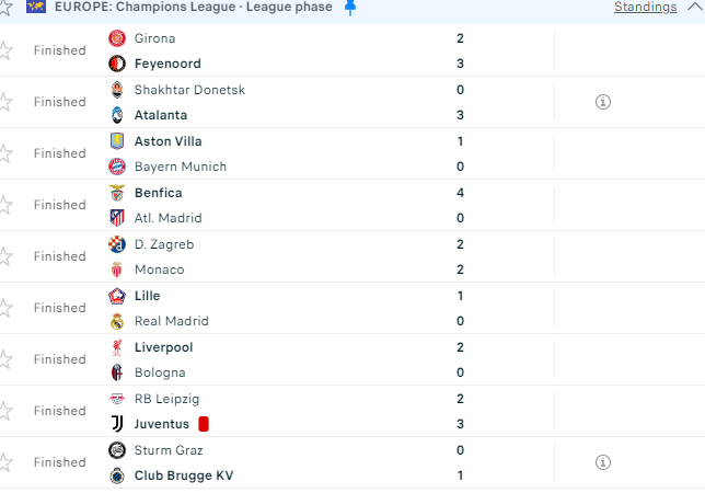Pikët maksimale i ka arkëtuar edhe Juventusi që në udhëtim mundi Leipzing, me rezultat 2-3, derisa Benfica e ka shkundur Atletico Madridin, me rezultat 4-0.