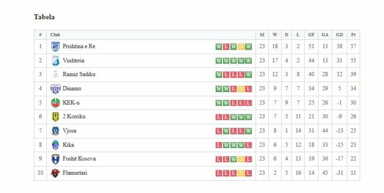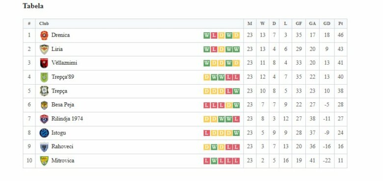 Kujtojmë se vendi i parë nga secili grup inkuadrohet direkt në Superligë, ndërkohë vendet e dyta elitën e futbollit kosovar e kërkojnë nga barazhi./Arbresh.info