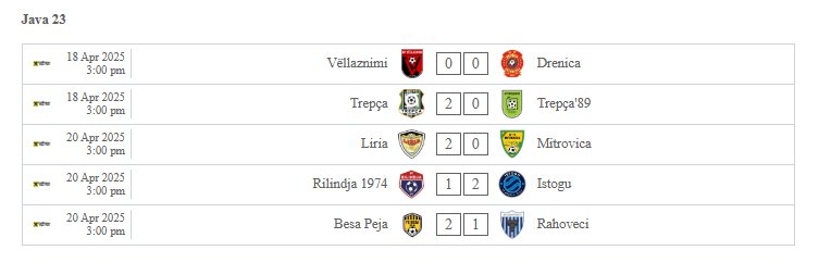 Dy takime tjera të luajtura sot në këtë grup Rahoveci u mposht 2-1 nga Besa Peja, gjithashtu Istogu shënoi fitore të rëndësishme në luftë për mbijetesë ndaj Rilindjes 1974.