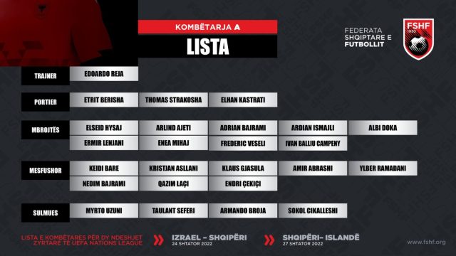 Është publikuar lista e futbollistëve të ftuar nga Shqipëria për ndeshjet e shtatorit ndaj Izraelit me datën 24, dhe ndaj Islandës me datën 27 shtator.