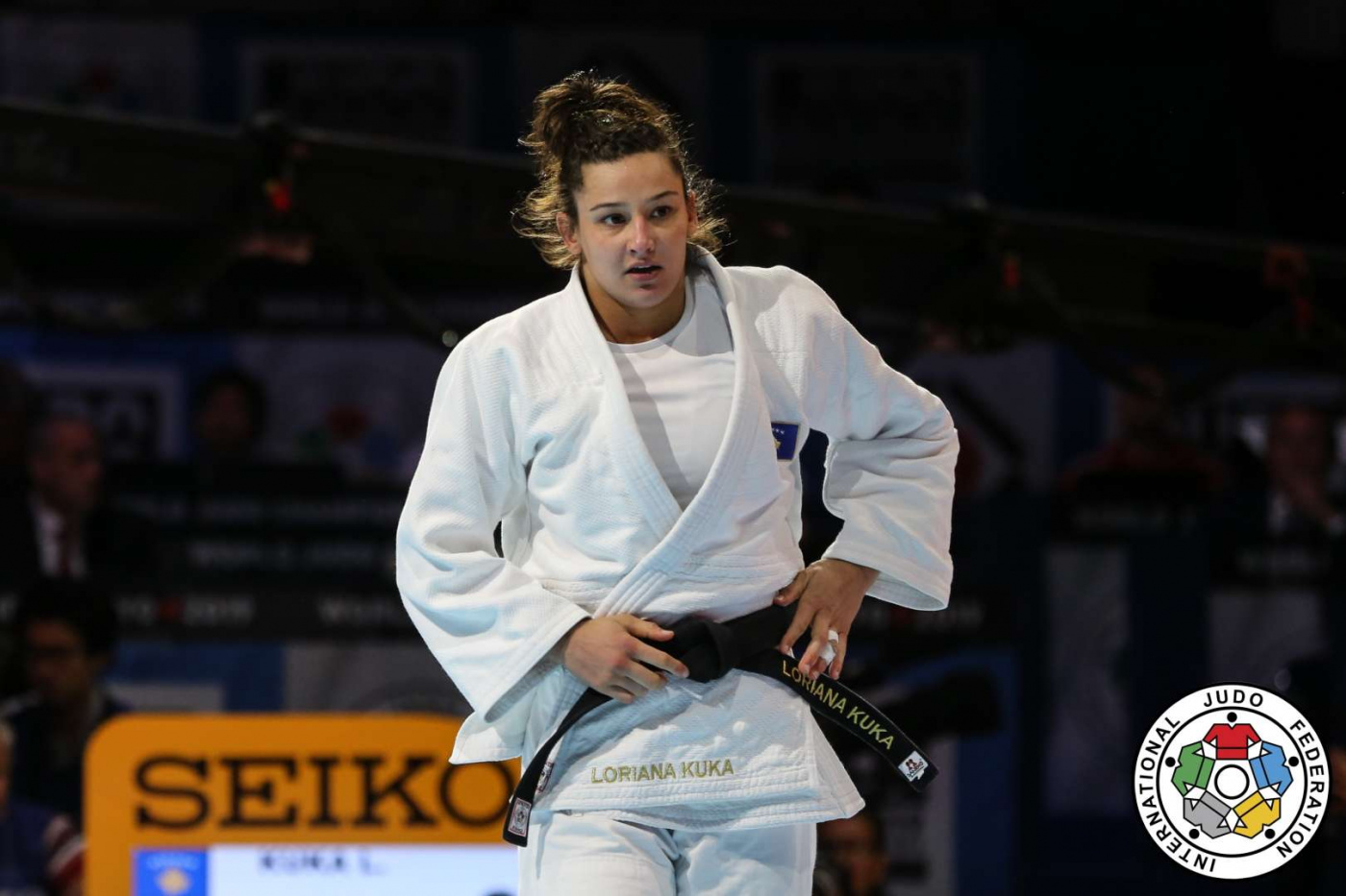 Kuka në raundin e parë mposhti me dy Wazaari për Ippon garuesen nga Qipro, në ndeshjen e dytë ajo mposhti me Ippon garuesen nga Ekuadori, përcjell arbresh.info.