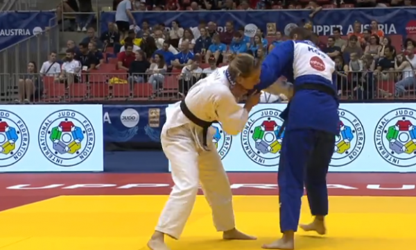 Xhudistja kosovare në raundin e dytë e mundi xhudisten Anka Pogacnik.