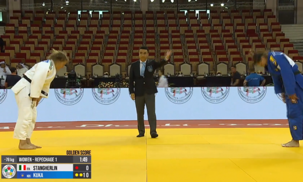 Xhudistja kosovare mposhti italianen Giorgia Stangherlin pas një dueli të gjatë, shkruan Gazeta Express.