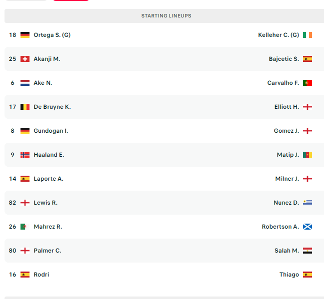 Janë publikuar formacionet zyrtare të ndeshjes mes Manchester Cityt dhe Liverpoolit.