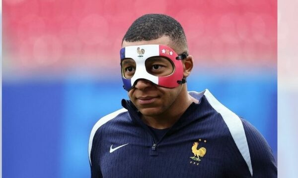 Në prag të ndeshjes ndaj Holandës në Leipzig, vendimtare për kryesimin e grupit D të Euro 2024, sulmuesi i Real Madridit ka përdorur një maskë mbrojtëse trikolore, me ngjyrat e flamurit francez, simbolin e “Gjelave” dhe inicialet e tij të shkruara në të.